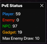- PvE - monitor players, enemies, NPCs, and gadgets around you